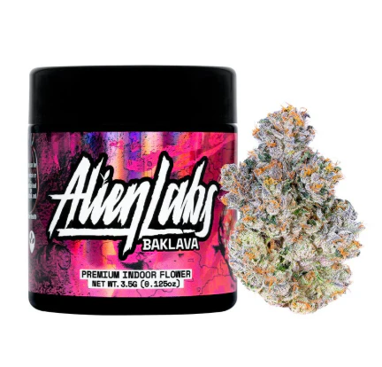 Discover the exceptional quality of Alien Labs 3.5g Baklava, an outstanding indica strain available at MMD Shops Hollywood. This premium cannabis combines the legendary genetics of Kosher Kush and Gelato #41, delivering an unparalleled experience that exemplifies superior cultivation standards.