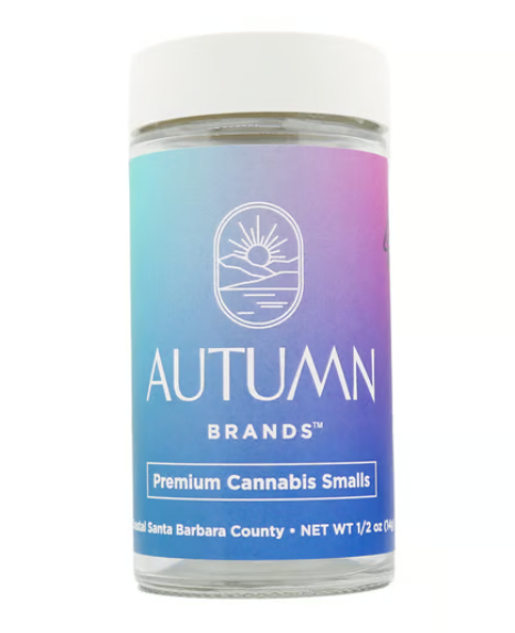 Packaged in a glass jar with a Boost humidity pack, these 14 grams of hand-trimmed smalls maintain optimal freshness. Autumn Brands, a family-owned and 50% women-operated company, ensures pesticide-free cultivation on their coastal Santa Barbara County farm. Their commitment to quality extends to hand-filling jars and producing pre-rolls on-site.