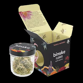 We take pride in carefully selecting our strains so we can deliver the best flavor profile possible. We are driven to make the best-tasting and highest-quality cannabis products, which is why each jar contains 3.5g of the highest quality flower. All of our jars are packed with large buds grown with our award-winning genetics. All of our eighths come in airtight child-resistant mason jars for maximum freshness, within a beautifully branded binske box.