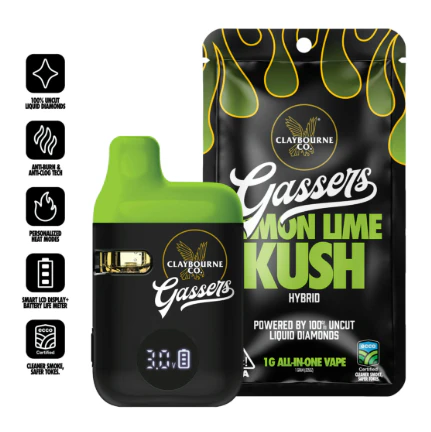 Experience premium cannabis excellence with the Claybourne Gassers All In One 1g Lemon Lime Kush, available at MMD Shops Hollywood. This revolutionary vaping device represents the pinnacle of clean, potent cannabis consumption, featuring uncut liquid diamonds that deliver exceptional THC levels averaging 90-92% with nothing diluted or compromised.