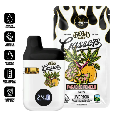 Claybourne Gold Cuts Live Resin Gassers AIO 1g Paradise Pomelo