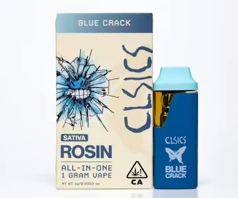 Crafted using CLSICS' proprietary solventless process, this live rosin disposable offers the authentic flavor, aroma, and effects of Blue Crack in a convenient, long-lasting format. The full-spectrum, strain-specific hash oil provides a true entourage effect, ensuring a genuine and powerful cannabis experience.