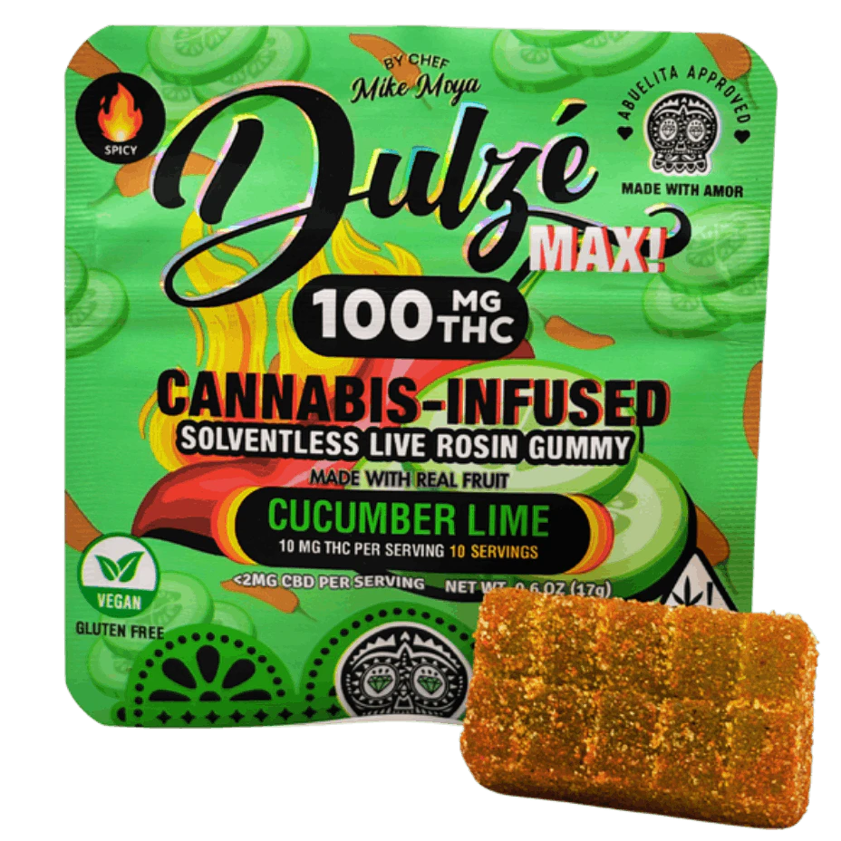 Experience the perfect fusion of cool refreshment and fiery spice with MMD Shops' Dulze Rosin Gummy Cucumber Lime. This extraordinary single-piece gummy delivers an unexpected flavor journey that starts with crisp cucumber and bright lime, then builds to a bold chili finish that awakens your senses. Infused with premium live rosin, this innovative treat offers a sophisticated alternative to traditional cannabis consumables.