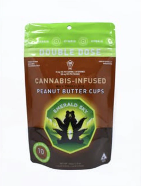 Satiate your sweet-tooth cravings and embrace the calming effects of THC with Emerald Sky's 10pk Hybrid Peanut Butter Cups, available at MMD Shops Hollywood. Each pack gives you an indulging escape. Wrapped individually for convenience and consistent dosing, these scrumptiously creamy cups offer a perfect balance of milk chocolate and peanut butter, infused with a tasteless hybrid THC extract. This blend is perfect for both recreational and medical cannabis users, with each dreamy cup carefully dosed with 10 mg of THC.