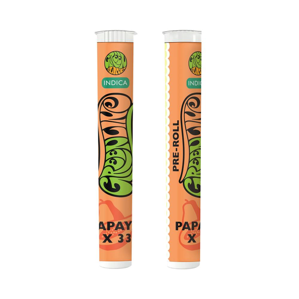 Experience premium cannabis with the Green Line Infused Preroll 1g Papaya x 33, available at MMD Shops Hollywood. This expertly crafted hybrid strain combines the best of Papaya Runtz and Gelato 33 genetics, delivering a high-THC experience that balances relaxation with euphoric bliss.