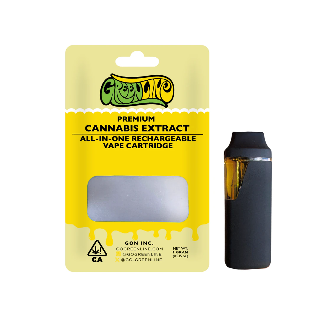 Experience the tropical bliss of Green Line All In One 1g Maui Pineapple, a premium sativa vape cartridge available at MMD Shops Hollywood. This exceptional strain combines the genetics of Pineapple Express, Cheese, and Skunk #1, creating a unique profile that delivers both potency and flavor in every puff.