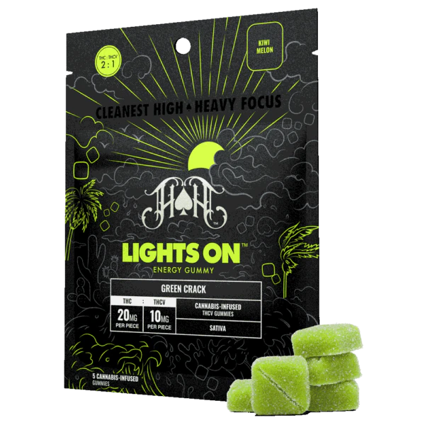 Introducing the Heavy Hitters Green Crack THCv Gummy from MMD Shops Hollywood, your premier destination for medical weed in Hollywood, CA. This remarkable, power-packed super sativa is a descendant of the legendary Skunk #1 strain, blended with an undisclosed landrace indica. Envision a green machine, tailored to lift you high and energize without that notorious hunger.