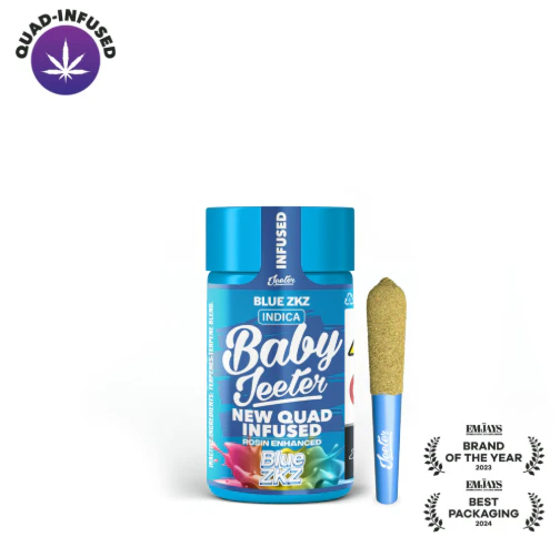 Get ready to elevate your cannabis experience with a true Hollywood favorite: the Baby Jeeters Infused 5pk Prerolls 2.5g Blue Zkittles, found exclusively at MMD Shops Hollywood. Transport yourself into a state of ultimate relaxation with five individually wrapped .50g joints, boasting a grand total of 2.5g of top-shelf, indoor-grown Indica. Let the expertly cultivated Blue Zkittles take hold, guiding you into a tranquil state of pure joy and happiness, punctuated by pangs of insatiable hunger.
