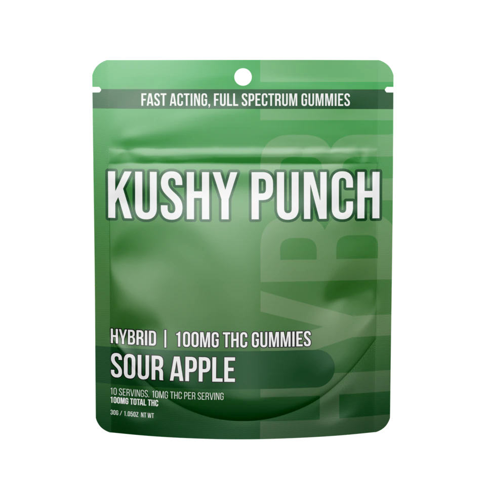 Experience the perfect harmony of flavor and effects with Kushy Punch 10pk Gummies Sour Apple, available at MMD Shops Hollywood. These exceptional hybrid gummies deliver the ideal balance of tangy and sweet, creating a delightful taste sensation that will have your entire body dancing with delight. Our full spectrum hybrid blend enhances your sense of well-being, empowering you to tackle any adventure that comes your way.