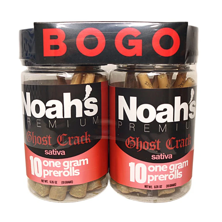 Fuse your day with unbounded energy and sharp focus as you experience the transformative power of the Noah's Premium BOGO 10pk x 2 Sativa. This potent, invigorating strain is the outcome of a cross between the enigmatic Ghost Train Haze, first bred by Rare Dankness, and the euphoric Green Crack, a Skunk #1 byproduct.