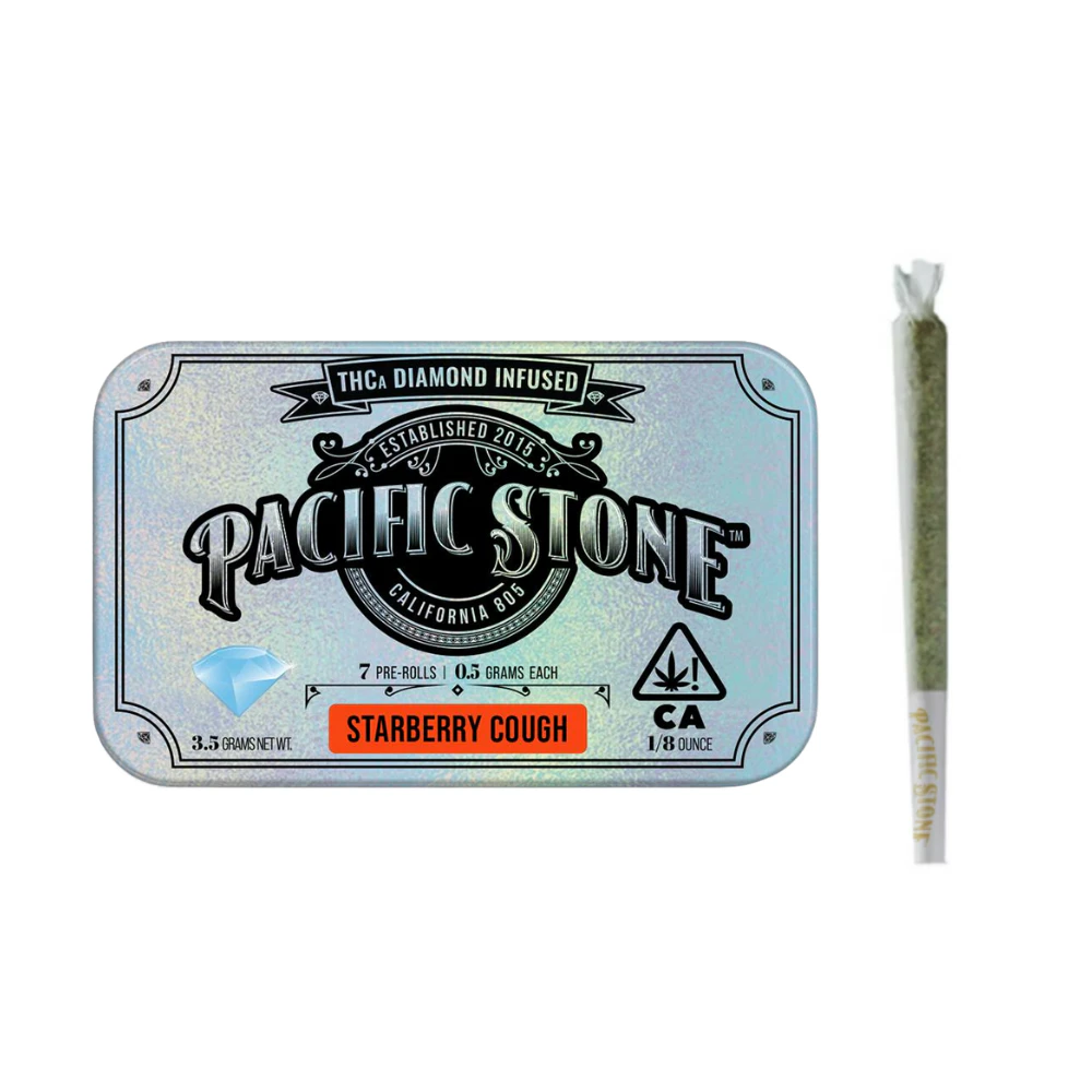 Experience a new level of smoking with Pacific Stone's Diamond Infused Pre-Rolls. These pre-rolls combine high-quality flower with powerful potency. Each pre-roll contains THCA diamonds, which are created through precise temperature and pressure manipulation to produce strong crystalline structures that deliver a potent high. The THCA diamonds are mixed with our premium greenhouse-grown whole flower, ensuring a consistent and robust smoking experience with every puff. The infusion process guarantees that you still taste the true flavor profiles of our expertly cured flower. Whether sharing with friends or enjoying alone, these pre-rolls are an excellent choice for those looking for a potent and refined smoking experience. Be aware that the effects may linger and take a few hours to wear off completely, providing a lasting high.
