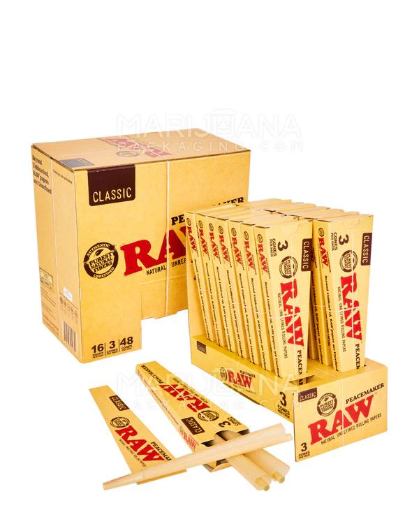 Known in the smoke shop industry as a premier rolling paper brand, RAW's Peacemaker organic pre-rolled cones are made with 100% natural unbleached paper and are the preferred rolling paper in the smoking world. These rolling papers measure in at 140mm, and offer the user the luxury of being in cone form prior to use.