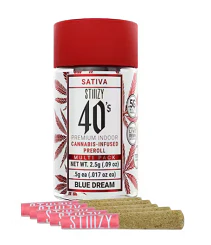 Elevate your pre-roll game. Stiiizy 40s pre-rolls are setting the standard with high potency, cannabis infused joints coated evenly with kief. Using our proprietary live resin infusion methods, we’ve designed every pre-roll to offer 40%+ THC potency with a unique flavor profile. With a smooth inhale and tasteful exhale, each and every Stiiizy 40 is packed with indoor grown flower, specifically made to ensure a potent and long-lasting high. Spark up the 40s.