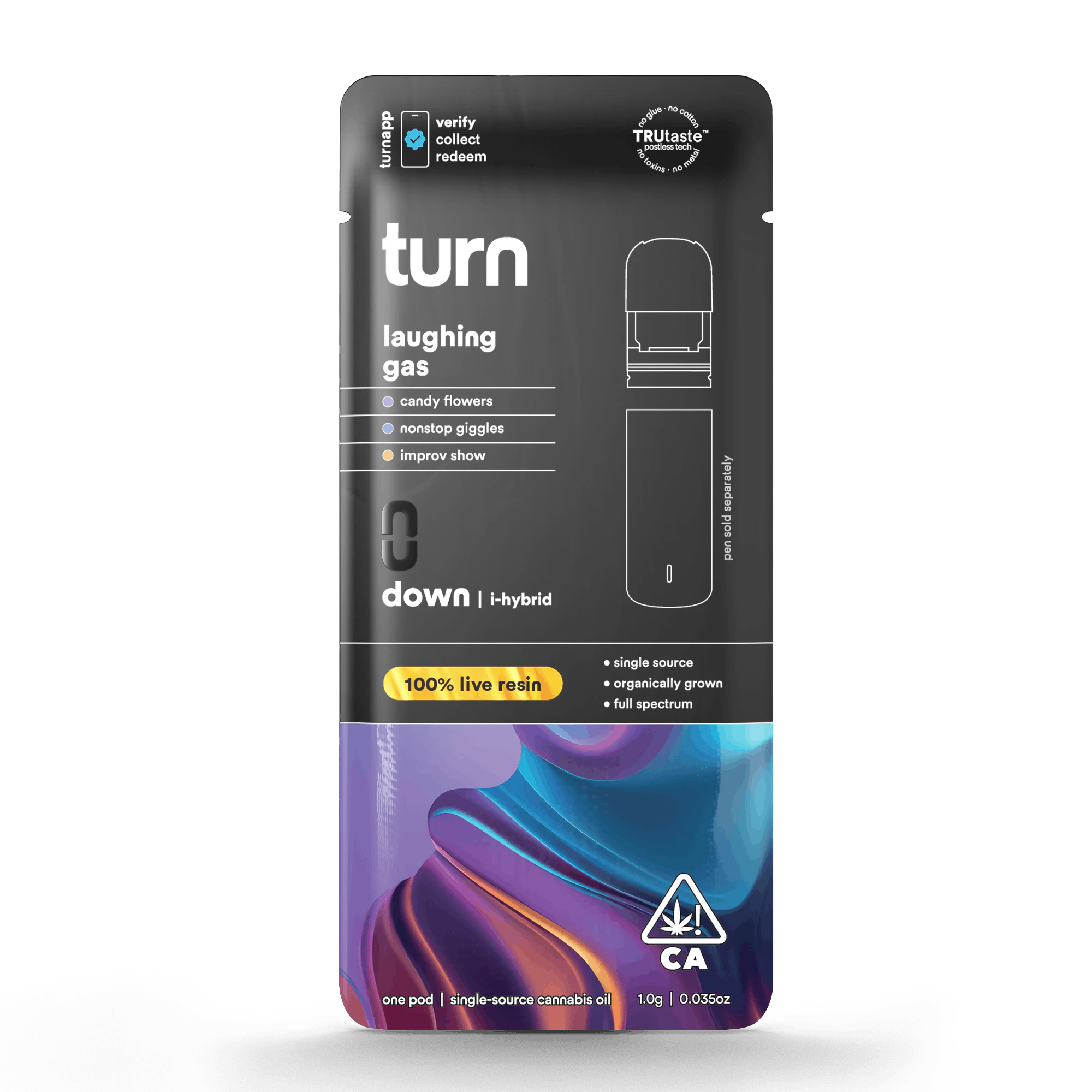Experience the euphoric bliss of Turn Live Resin Pod 1g Laughing Gas, exclusively available at MMD Shops Hollywood's premier cannabis dispensary. This exceptional mood-elevating strain masterfully combines the genetics of Slurricane and Gelato 33, delivering an unforgettable experience that sparks engaging conversations and infectious laughter.