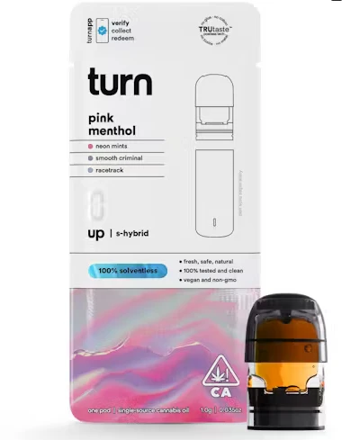 Experience premium cannabis with the Turn Solventless Pod .5g Pink Menthol, exclusively available at MMD Shops Hollywood. This exceptional vape features Pink Certz, an award-winning hybrid masterfully crafted by Compound Genetics through The Menthol x Grape Gasoline crossover that enthusiasts have been craving.