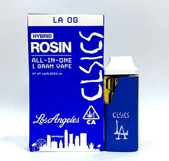 Experience the pinnacle of cannabis innovation with CLSICS Live Rosin All In One 1g LA OG, available at MMD Shops Long Beach, your trusted Medical Marijuana Store and Cannabis Dispensary serving Long Beach, CA, Signal Hill, CA, Lakewood, CA, Carson, CA, Rossmoor, CA, and Los Alamitos, CA since 2006. This premium all-in-one vaporizer device features LA OG, a legendary strain crafted through CLSICS' proprietary solventless extraction process, delivering an unparalleled combination of convenience and quality.