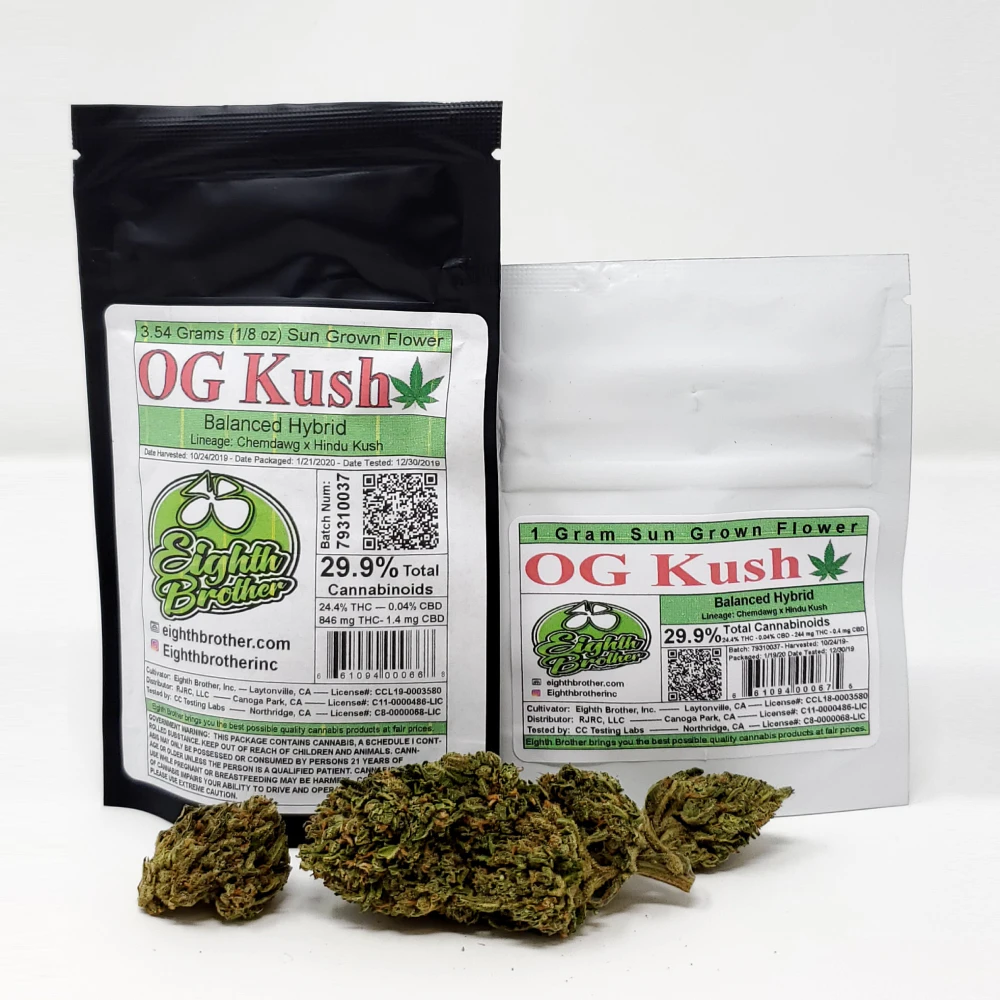 Each carefully cultivated batch of Eighth Bros OG Kush maintains the highest standards of quality, featuring dense, crystal-covered buds that showcase the strain's classic characteristics. Users can expect a complex aroma combining earthy pine notes with bright citrus undertones, creating an unmistakable sensory experience.
