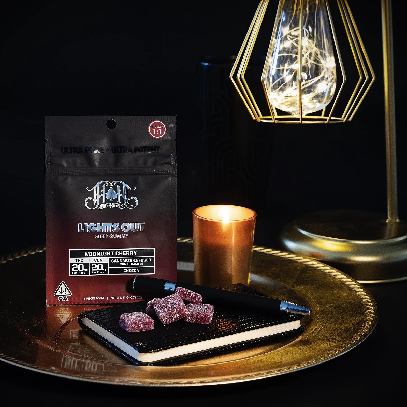 Experience tranquil relaxation with Heavy Hitters Gummies 1:1 CBN Midnight Cherry, available exclusively at MMD Shops Long Beach. Each gummy delivers a balanced combination of 20mg THC and 20mg CBN, perfectly formulated to help you unwind and achieve restful sleep. These Indica-leaning edibles feature an irresistible midnight cherry flavor that makes each dose a delightful experience.