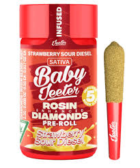 Experience the exceptional quality of Jeeter Baby Infused 5pk Prerolls featuring Strawberry Sour Diesel, a premium sativa strain that delivers an invigorating and uplifting experience. This carefully curated pack contains five expertly crafted pre-rolls, each weighing 0.5 grams for a total of 2.5 grams of superior cannabis.