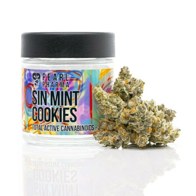 Experience the exquisite Sin Mint Cookies strain by Pearl Pharma, a premium indica-dominant hybrid that masterfully combines Blue Power and Forum Cut GSC genetics from Sin City Seeds. This meticulously cultivated 3.5g flower offers a complex flavor profile that lives up to its name, delivering sweet, minty notes complemented by earthy undertones and subtle cookie-like warmth.