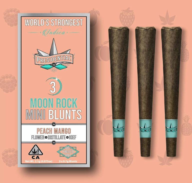 Experience pure luxury with Presidential Infused Mini Blunts in Peach Mango flavor, available at MMD Shops Long Beach, your trusted cannabis provider since 2006. Each package contains three perfectly crafted 0.7g mini blunts, totaling 2.1g of premium, infused cannabis enjoyment.