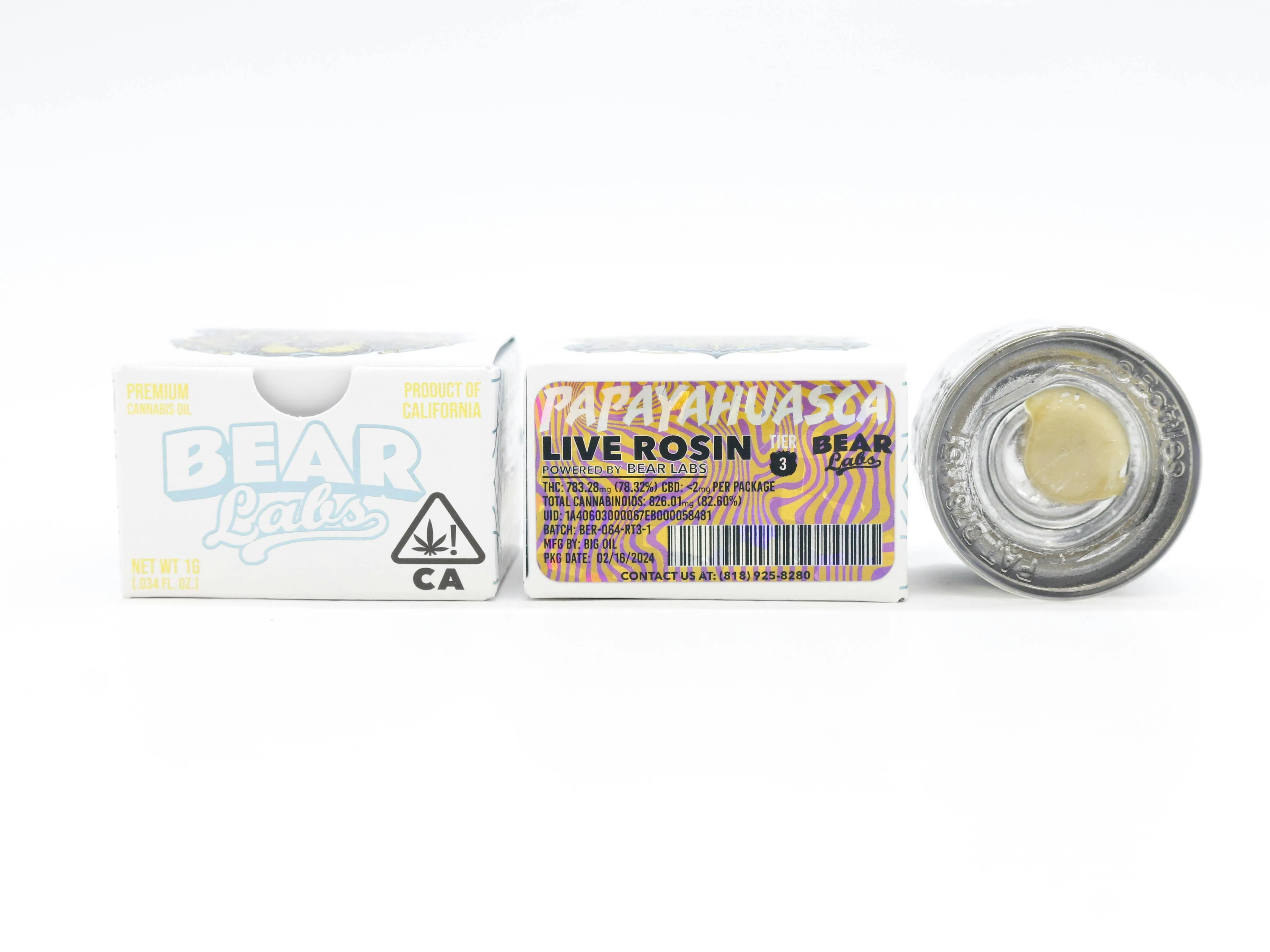 Experience the exquisite Papayahuasca rosin from Bear Labs Tier 3, meticulously crafted for the discerning cannabis enthusiast. This premium 1-gram concentrate delivers an extraordinary fusion of tropical fruit notes, dominated by succulent papaya, intertwined with subtle earthy undertones that create a sophisticated flavor profile. Expertly extracted using advanced solventless techniques, this rosin preserves the plant's natural terpenes and cannabinoids, ensuring a pure and potent experience.