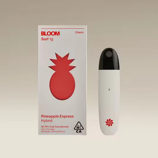 Discover the tropical paradise of Pineapple Express with Bloom Classic Surf All-In-One 1g. This hybrid blend transports you to a blissful beach-side escape, perfect for those seeking a sweet and uplifting experience. The tantalizing aroma of pineapple, complemented by notes of cedar, creates a sensory journey that's both invigorating and relaxing.