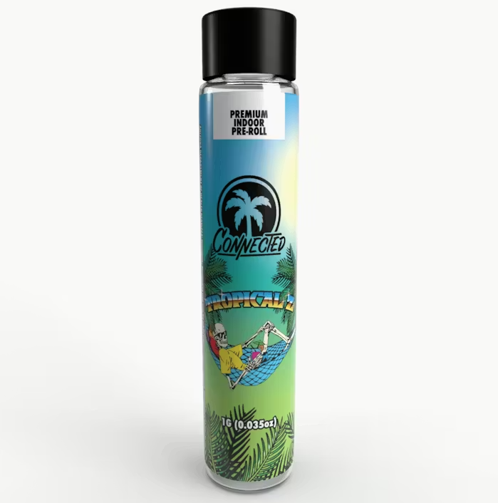 Experience the tropical paradise of Connected Preroll 1g Tropical Z, now available at MMD Shops Marina Del Rey, your premier medical weed and marijuana dispensary serving Marina Del Rey and Santa Monica, CA. This expertly crafted sativa-dominant preroll delivers an exceptional cannabis experience that transports you to island bliss with every puff.
