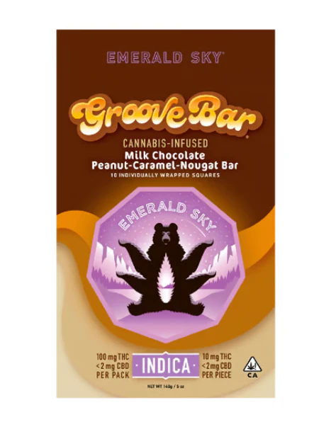 The Emerald Sky Live Rosin Groove Bar 10pk Indica brings together nostalgic indulgence and premium cannabis craftsmanship in one unforgettable treat. This cannabis-infused masterpiece recreates the world's most beloved chocolate bar, featuring perfectly layered roasted peanuts, smooth caramel, and rich nougat, all enveloped in luxurious milk chocolate. Each bite delivers that classic comfort with a sophisticated cannabis twist.