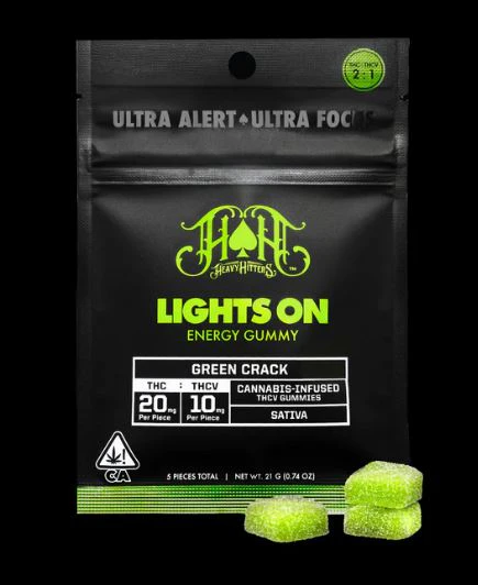 Unleash the power of the green with Heavy Hitters Gummies 100mg Lights On Green Crack THCv. Far from just an edible, this product is a green machine, engineered to provide a clean, energetic high, minus the edge. Each gummy packs a punchy blend of kiwi, melon, and sour apple, embodying the essence of energy.