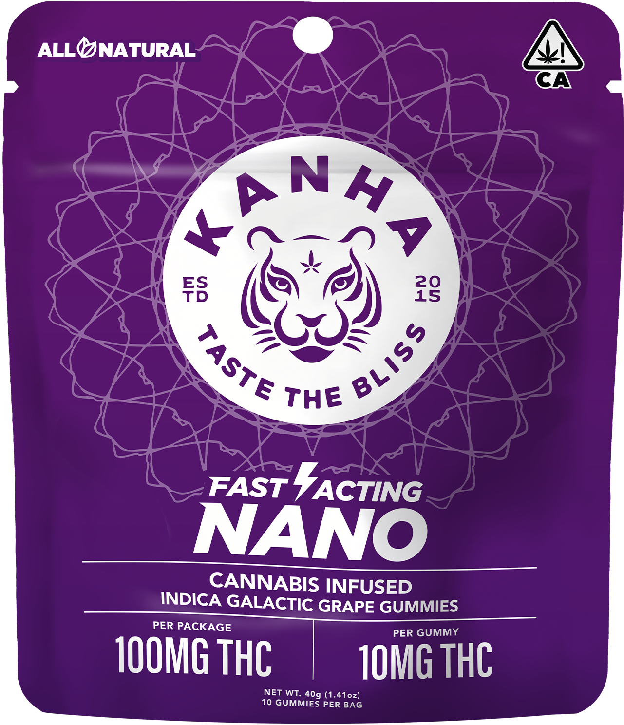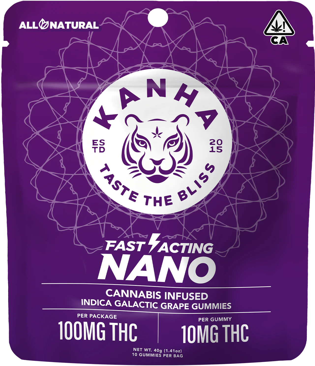 Experience the future of cannabis edibles with Kanha Nano Gummies in Galactic Grape, available at MMD Shops Marina Del Rey. These revolutionary gummies harness cutting-edge nanomolecular technology, delivering a powerful and rapid-acting experience that sets them apart from traditional edibles. Each precisely dosed package contains 10 pieces at 10mg per gummy, totaling 100mg of premium cannabis extract per bag.