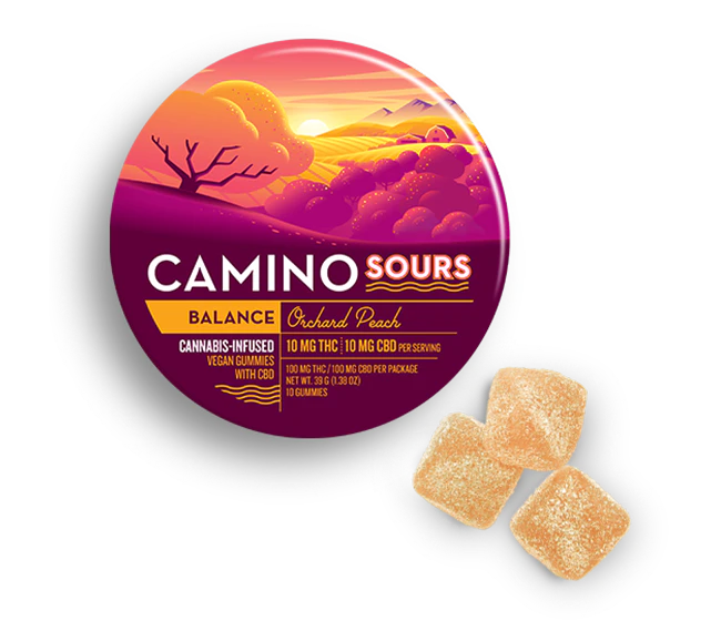 Invigorate your senses with the flavorful Kiva Camino Sours in Orchard Peach variant. This concoction by our friends at MMD Shops Marina Del Rey brings forth notes of ripe, juicy peach nestled in the tart allure, creating a harmonious treat for your palate. Each piece infuses a balanced blend of indica and sativa-like terpenes, a superb option for those desiring to come back to their center amidst the rush of city life.