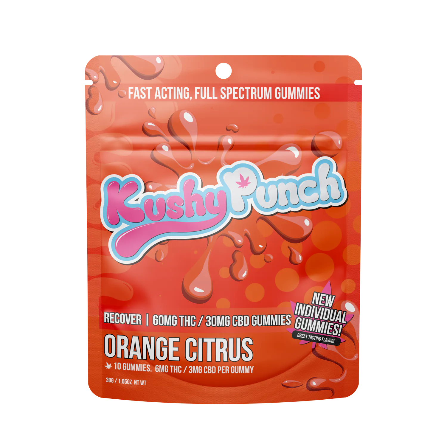 Experience the perfect balance of relaxation and recovery with Kushy Punch 10pk Gummies Recover Orange Citrus CBD 2:1, now available at MMD Shops Marina Del Rey. This premium cannabis gummy delivers a thoughtfully crafted 2:1 CBD to THC ratio, making it ideal for post-workout recovery and daily wellness routines.
