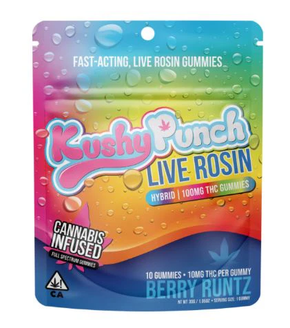 Kushy Punch Live Rosin 10pk Gummies Berry Runtz delivers an exceptional cannabis experience through premium live rosin extraction and the beloved Berry Runtz genetics. These 100mg hybrid gummies offer the perfect balance between uplifting euphoria and soothing relaxation, making them ideal for any time of day. Each bite bursts with authentic berry flavors complemented by tangy fruit undertones that capture the essence of this celebrated strain.