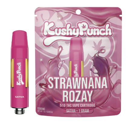 Experience the vibrant energy of Strawnana Rozay with the Kushy Punch Cart 1g, exclusively available at MMD Shops Marina Del Rey. This exceptional sativa vape cartridge delivers the perfect morning pick-me-up, combining luscious strawberry and ripe banana flavors that dance on your palate with every smooth draw.
