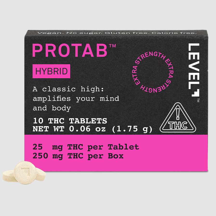 Experience precision and potency with LEVEL's 10pk PROTAB 250mg HYBRID, available exclusively at MMD Shops Marina Del Rey. Each gluten-free, vegan tablet delivers 25mg of THC for a balanced, full-body experience that harmoniously blends mental clarity with physical relaxation. The steam-distilled hybrid terpenes ensure a traditional yet comprehensive high that cannabis enthusiasts appreciate.