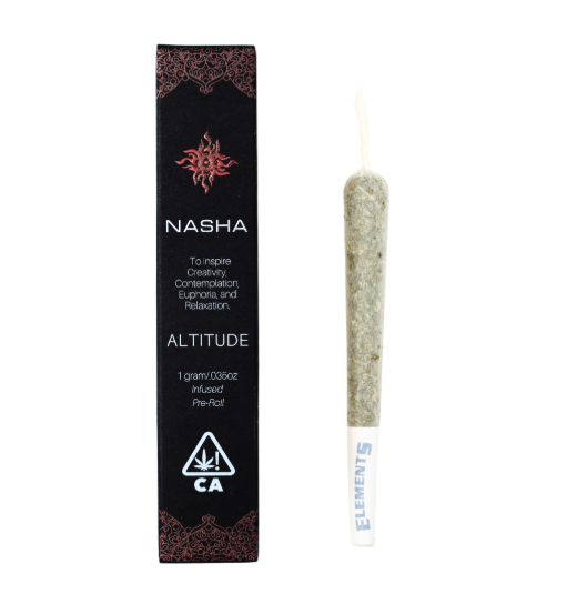 Sour Diesel — A legendary sativa-dominant strain known for its pungent, fuel-like aroma with notes of citrus and earth. Its sharp, diesel scent carries into a tangy, slightly herbal flavor that lingers on the palate. Sour Diesel delivers an energizing, cerebral high that sparks creativity, focus, and an uplifting sense of euphoria, making it a go-to for daytime use. Dominant terpenes include myrcene, limonene, and caryophyllene, which together create its signature diesel zest and mood-boosting clarity. Strawberry Bomb is an exciting combination of THC Bomb and Strawnana strains. It packs a powerful, long-lasting feeling go well being paired with a citrus woody, sweet, fruity, and candy-like flavors. Together, this is an uplifting and relaxing duo who work wonders for keeping stress at bay. With a languid body and mind, Strawberry Bomb accentuates your creativity and promotes calmness. Nasha’s hash-infused Altitude Preroll is made from a mix of trimmed whole flower cannabis and in-house produced cold water hash, crafted to inspire creativity, euphoria, and productivity.