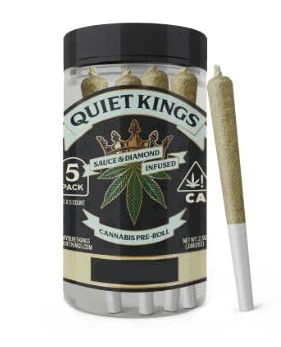 Experience the ultimate relaxation with Quiet Kings' expertly crafted infused prerolls, featuring the exceptional Grape God strain. Each pack contains five perfectly rolled 0.5g joints, totaling 2.5g of premium indica-dominant cannabis. Combining the legendary genetics of God Bud and Grapefruit, these prerolls deliver a sophisticated blend of sweet grape aromatics complemented by subtle earthy undertones that become more pronounced upon exhale.