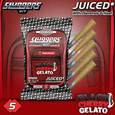 Experience pure indulgence with Sluggers x Backpack Boyz Infused Black Cherry Gelato prerolls, exclusively available at MMD Shops Marina Del Rey. This exceptional 5-pack collaboration brings together premium cannabis crafted with meticulous attention to detail. Each preroll is expertly infused with top-shelf flower, liquid diamonds, and solventless hash, delivering an elevated experience that connoisseurs will appreciate.