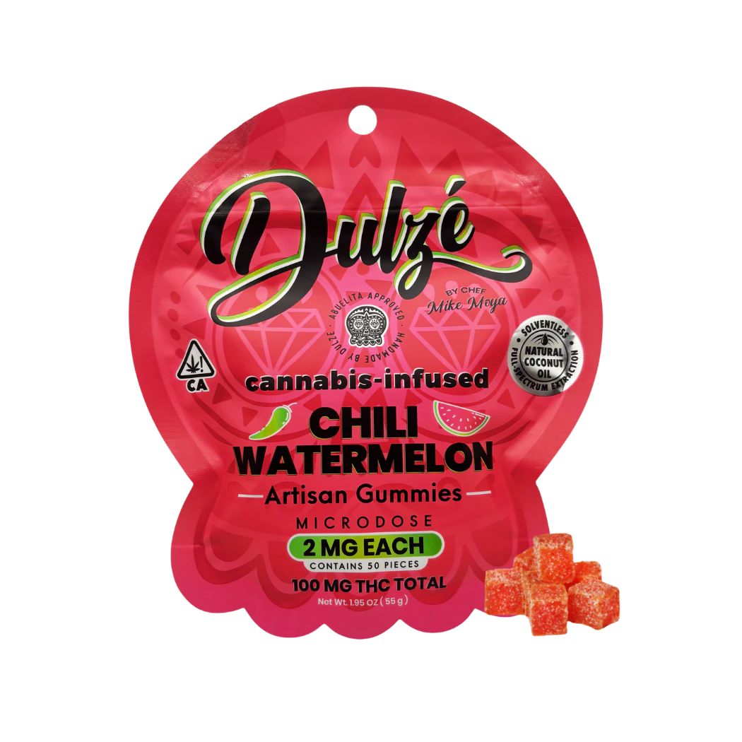 Experience the perfect balance of sweet and heat with Dulze Microdose 50pk Gummies in Chili Watermelon, now available at MMD Shops North Hollywood. These expertly crafted edibles deliver a burst of juicy watermelon flavor enhanced with an exciting spicy kick that tantalizes your taste buds.