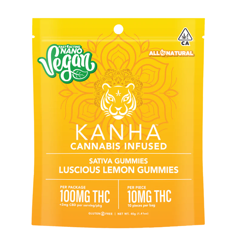 Experience the perfect fusion of innovation and flavor with Kanha Nano Vegan Gummies in Luscious Lemon, available at MMD Shops North Hollywood. These premium cannabis-infused treats harness cutting-edge nanomolecular technology to deliver an exceptionally fast-acting experience. Each bag contains 10 precisely dosed gummies, with 10mg of THC per piece, totaling 100mg per package.