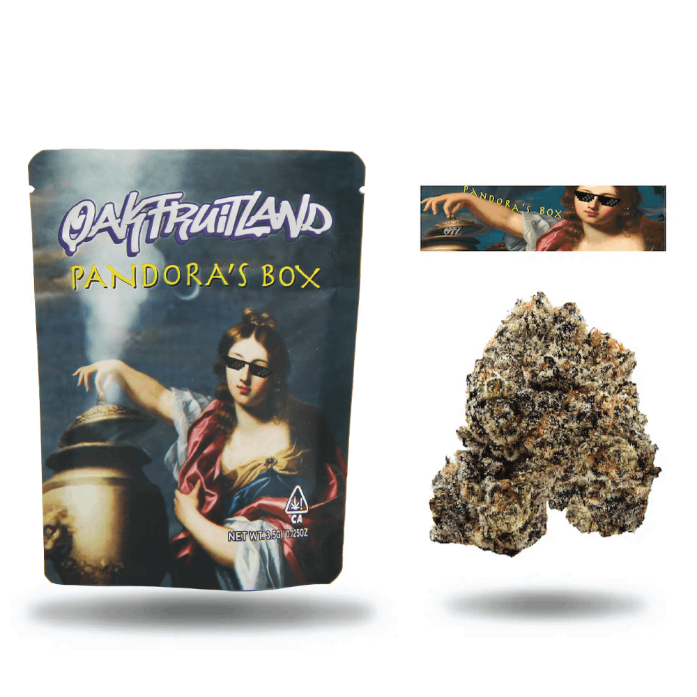 Discover the unique and delightful sensation of Oakfruitland's 3.5g Pandora's Box, an exquisite cannabis product proudly offered by MMD Shops, your go-to dispensary in North Hollywood and Burbank, CA. This elite strain is a mostly sativa cross of Jack the Ripper and Space Queen, meticulously cultivated by the masters at Subcool's The Dank. It comes with notably high THC levels that promise a thrilling and potent excursion into verdant tranquility.