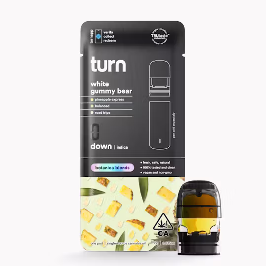 Each 1-gram pod features Turn Botanica's signature extraction process, ensuring consistent potency and purity with every puff. The White Gummy Bear strain offers a balanced hybrid experience, providing uplifting cerebral effects while maintaining gentle body relaxation. Users can expect enhanced mood, creativity, and stress relief without overwhelming sedation.