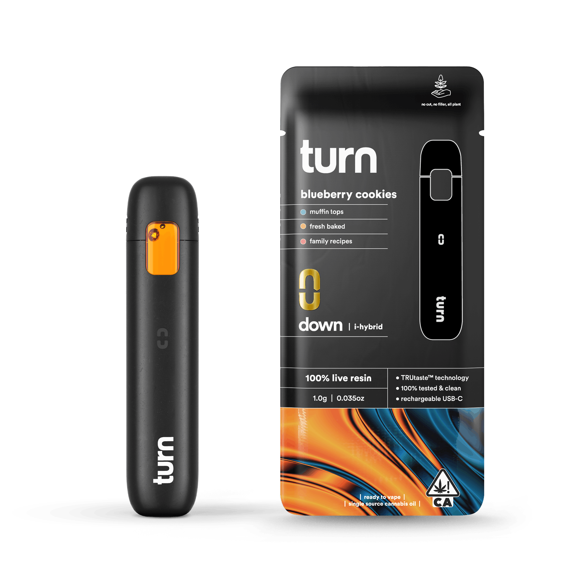 Discover the exceptional Turn Live Resin All-in-One 1g Blueberry Cookies at MMD Shops, your premier cannabis dispensary serving North Hollywood and Burbank, CA. This remarkable vape delivers an authentic taste experience with sweet berry notes and hints of earthy cherry, crafted from the unique fusion of Blueberry Tahoe and Thin Mint GSC strains.