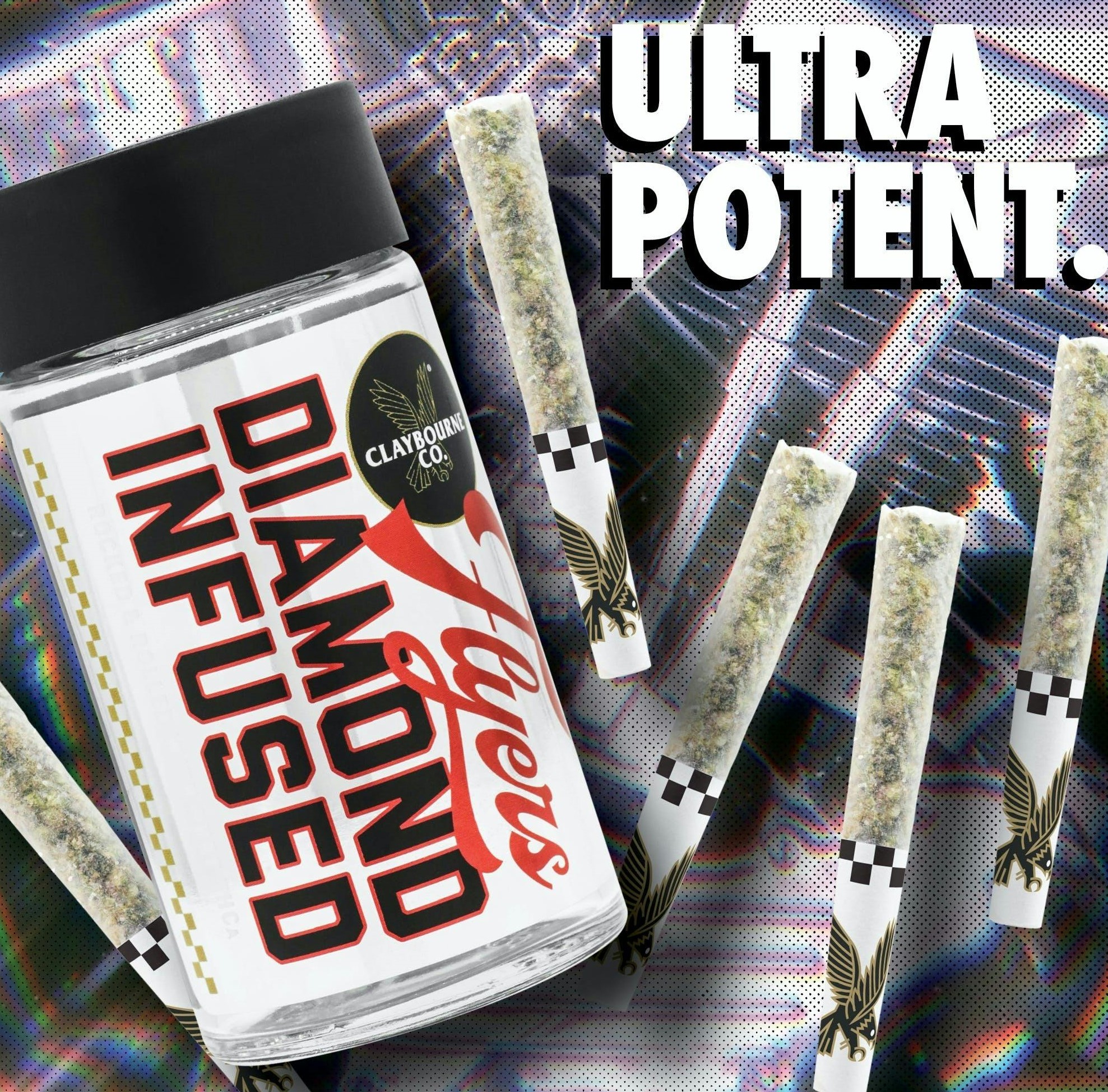 Profile: Gas, Pine, FruitDiamond Infused Flyers from Claybourne will take you higher than any other. These ultra potent Flyers are made from Premium Indoor Full Nug Flower and infused with crushed, pure THCa diamonds and rolled in a Half Gram pre-roll. Experience the ultra potency of Claybourne Diamond Infused Flyers.