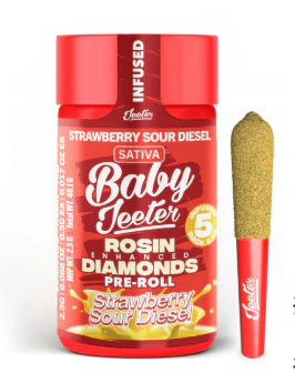Strawberry Sour Diesel Baby Jeeter Infused - Five .5g Joints 2.5g Total | Sativa | | Premium Flower Infused with Liquid Diamonds & Kief