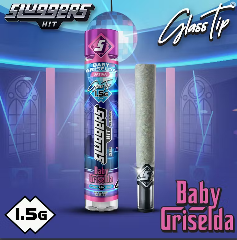 Enjoy a premium experience with the Sluggers 1.5g Joint, filled with whole ground flower and infused with live diamonds and hash. Featuring a collectible glass tip for a smooth draw, this joint combines quality and potency in every puff.